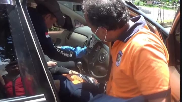 Foto: Sepasang kekasih ditemukan tewas dalam mobil di Surabaya saat dievakuasi.