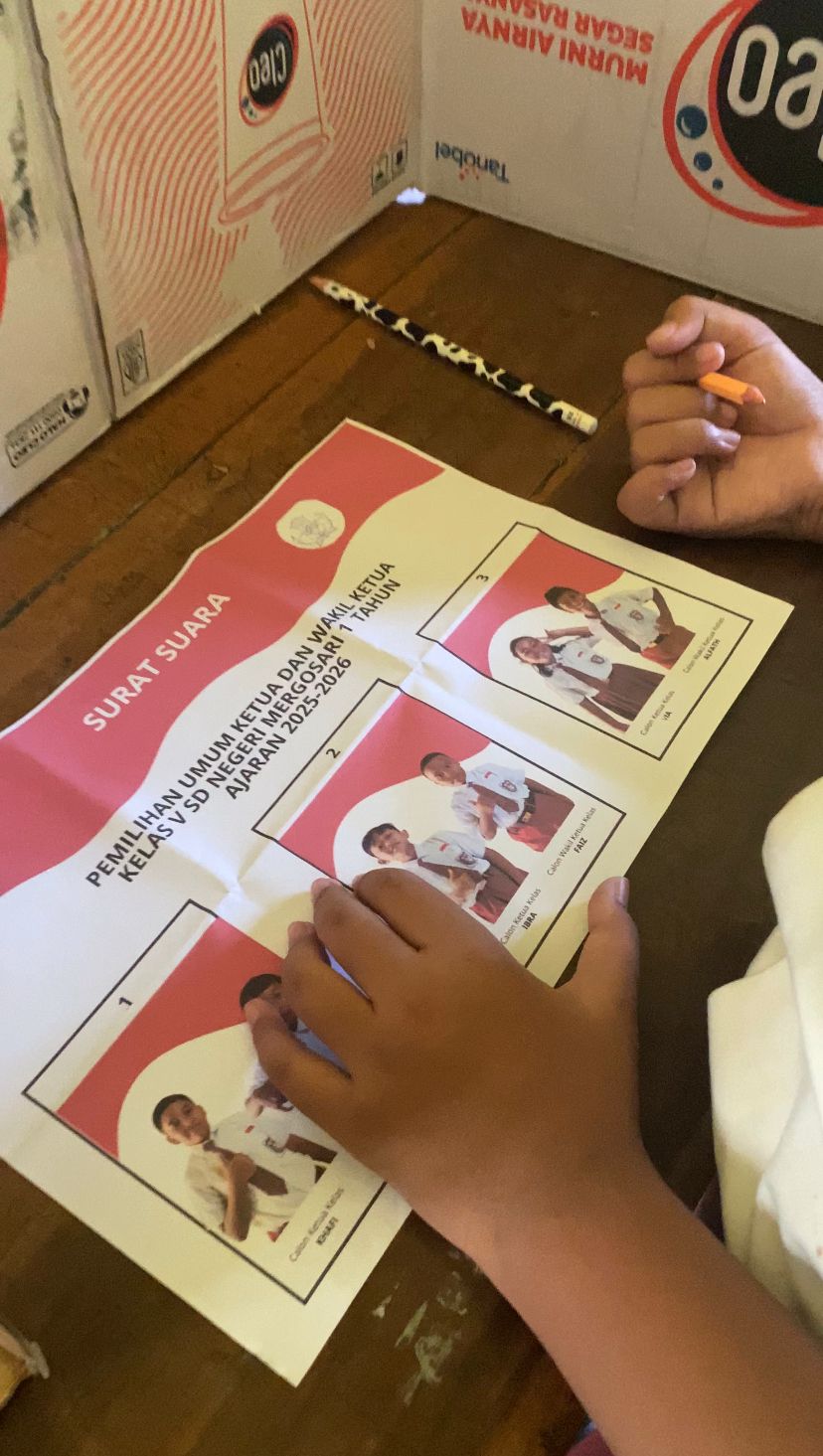 Wali kelas 5 Ibu Fidya Wahyu Handhini, S.Pd. menyampaikan harapannya agar melalui kegiatan ini, siswa mampu memahami pentingnya partisipasi dalam pengambilan keputusan bersama. Tak hanya belajar tentang demokrasi, siswa juga mulai membentuk karakter sebagai warga negara yang aktif dan bertanggung jawab. “Kami ingin anak-anak merasakan langsung bagaimana memilih pemimpin, karena kelak mereka akan menghadapi proses yang sama sebagai bagian dari masyarakat,” ujar beliau.