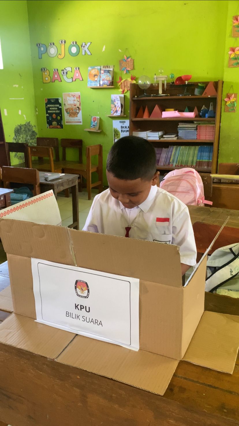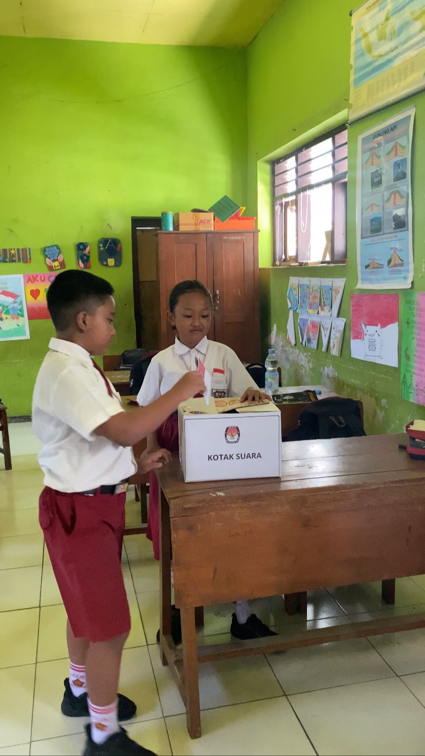 Ruang kelas disulap menjadi Tempat Pemungutan Suara (TPS) mini, lengkap dengan bilik suara dan kotak suara. Para siswa, yang telah didata sebagai pemilih tetap, mengikuti proses pencoblosan secara tertib. Wali kelas bertindak sebagai petugas pelaksana, memastikan jalannya pemilihan berlangsung jujur dan adil.