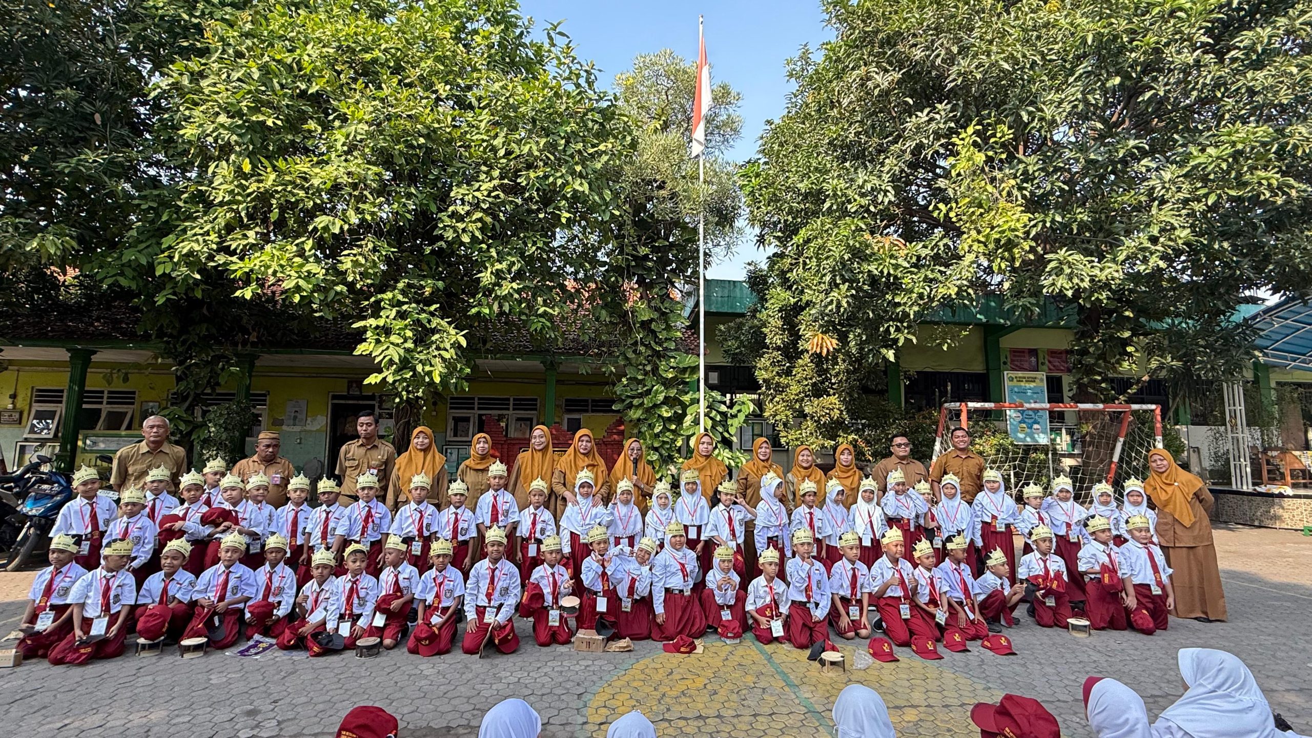 Setelah itu, seluruh siswa dan guru menyanyikan lagu “Hari Pertama ke Sekolah” bersama-sama, menciptakan suasana hangat dan menyenangkan. Hari pertama ditutup dengan sesi foto bersama menggunakan frame besar bertema MPLS Ramah sebagai kenang-kenangan hari pertama sekolah.