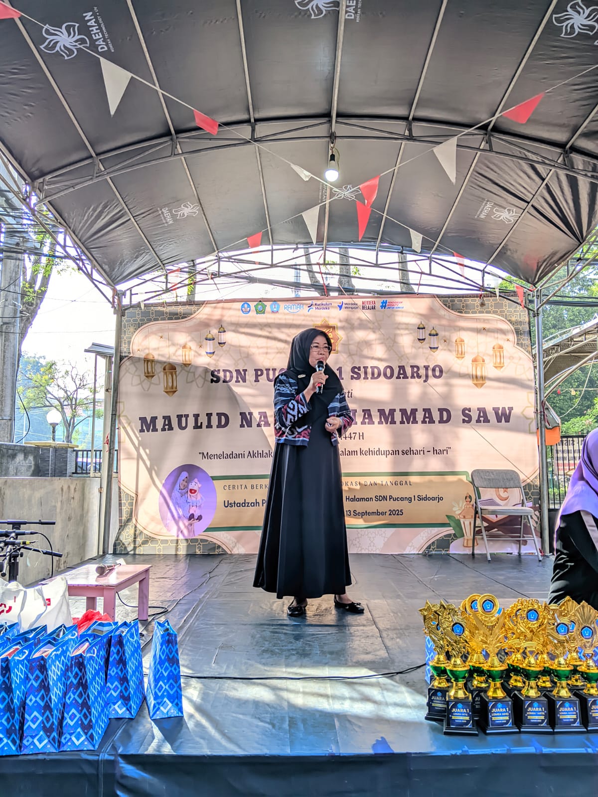 Berbagai macam acara atau kegiatan bertemakan Maulid Nabi diselenggarakan menyambut peringatannya, baik di lingkungan sekolah atau masjid. Kali ini kegiatan Maulid Nabi yang jatuh pada tanggal 5 September 2025 atau 12 Rabiul Awal 1447 H ini diselenggarakan bertempat di lingkungan sekolah SD Negeri Pucang 1 Sidoarjo yang bertemakan “Meneladani Akhlak Nabi Muhammad SAW”.