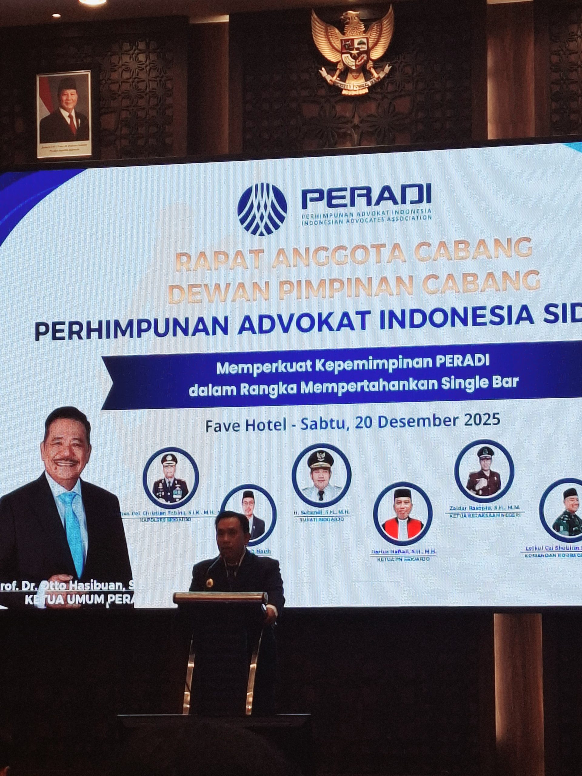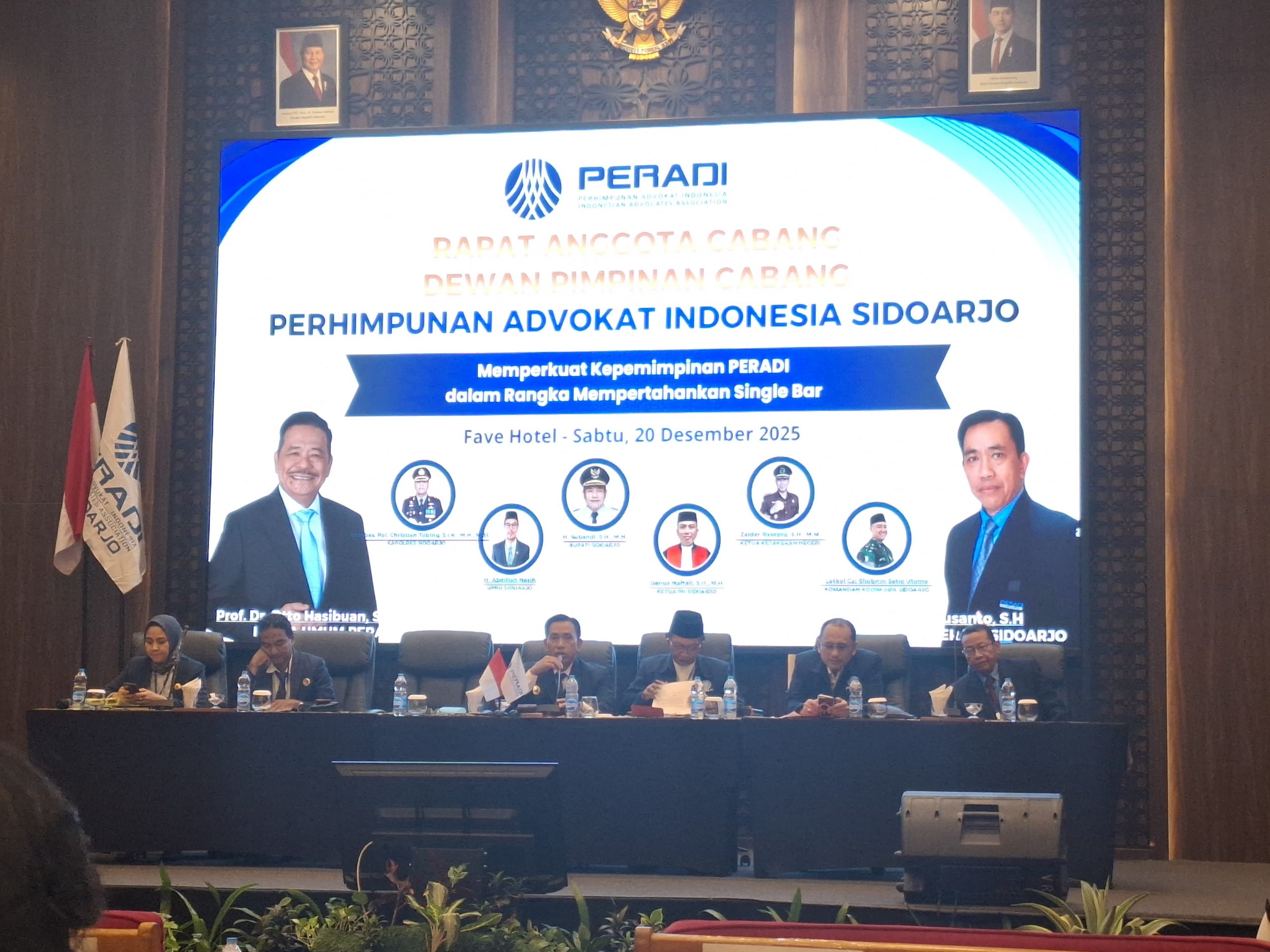 Sidoarjo, SuaraGlobal.Net – Dewan Pimpinan Cabang (DPC) Peradi (Perhimpunan Advokat Indonesia) Sidoarjo dibawah kepemimpinan Yunus Susanto, S.H. menggelar Rapat Anggota Cabang (RAC) di Fave Hotel Sidoarjo, Sabtu (20/12/2025) dimulai sekitar pukul 10.00 WIB sampai selesai.