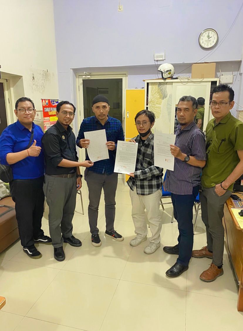 Keterangan Foto: dari kiri kuasa hukum Agung, tengah Agung, kanan Pihak PT Masmedia Buana Pustaka saat Penyelesaian Perkara dengan adanya Surat Kesepakatan Perdamaian di Polsek kecamatan Waru (20/03/2025).