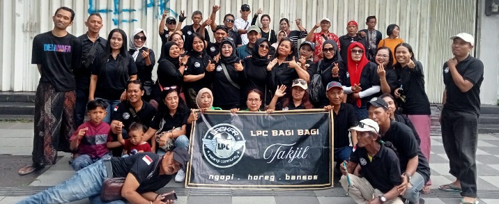 Pada hari Minggu (01/03/26) Laskar Pelangi Community (LPC) Surabaya menggelar baksos berbagi Tak’jil dibulan suci Ramadhan sebanyak 1000 bingkisan. Pelaksanaan berbagi Tak’jil bertempat di Jalan Mayjend Sungkono belakang bascamp LPC, sasaran utama musyafir dan penguna jalan serta Abang becak. Dihadiri Owner Mujilali, Bang Joz Ketua LPC Surabaya, Sinyo ketua pelaksana, dan beberapa Owner dari komunitas serta beberapa pengurus LPC dan juga semua anggota.